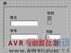 然后就可以往簇的框中添加各种类型的控件了,例如现在要建立一个学生的记录信息,包括学生的姓名,学号,性别和年龄.这就需要在簇外壳里依次放入两个字符串输入控件,一个数字控件和一个布尔控件.如图: