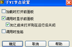 子VI运行是的位置,由子VI的文件下拉菜单中VI属性决定