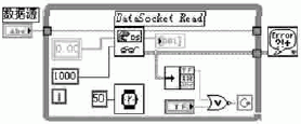 读模块起核心作用的时DataSocket Read vi,其数据源的URL地址须与数据宿的URL地址相同,要注意接收的数据类型与写端输出的数据类型一致。读端计算机也会运行DataSocket Server来监视网络接收和数据接收情况。读模块程序(见图2)。