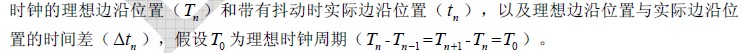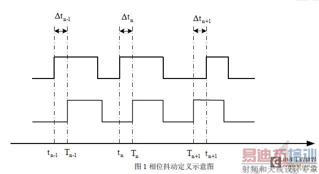 在数字系统中,两个逻辑电平之间的切换通常伴随着快沿的出现,这些边沿在时序上的不稳定性就叫做相位抖动(phase jitter,有时也叫累积抖动,accumulated jitter,指实际边沿位置与理想边沿位置的偏差,以时间为单位,也可以换算成弧度,角度等);相位抖动是相位噪声在数字域的等效体现,它是离散量,因此只有当边沿存在时候才有定义。