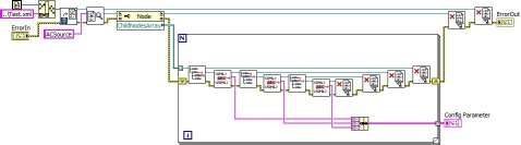 本文将使用LabVIEW中的解析器解析图 17所示的XML文件,如图 23所示(下载)。本例希望读取所有的AC Source仪器配置信息,首先使用Load.vi函数打开XML文件,得到DOM Document指针;然后,使用Get First Matched Node.vi函数搜索XML文件中的ACSource元素,并得到该节点的指针;使用ChildNodesArray获取ACSource元素下所有的一级子元素,即instrument元素列表;然后依次获取Instrument元素中的各个子元素的文本值;最后,使用Close.vi关闭打开的节点。从图中可以看出,当ACSource元素中增加了新的仪器时,该读取VI不需要任何修改,非常易于扩展。