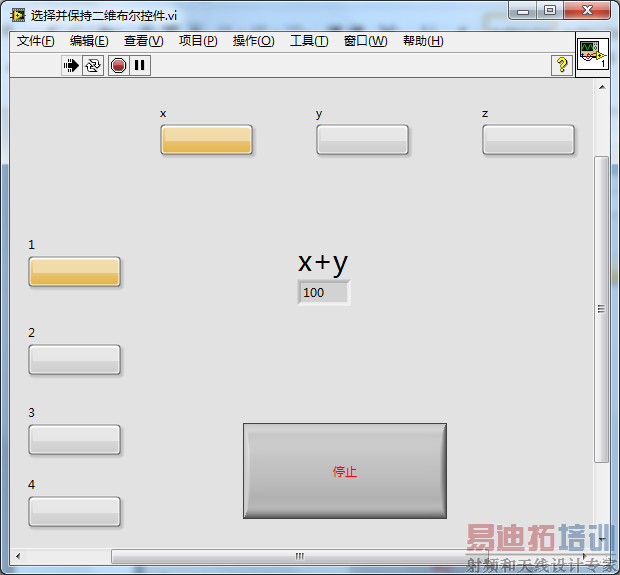 设计好如上面图所示的前面板,我们开始设计后面板程序,它主要可以分为三部分:初始化,事件响应,保持状态。