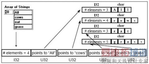 1:和其他类型的数组一样,字符串数组也是以I32长度开头的,接下是每个字符串的首地址指针(句柄)——U32数值,表示字符串在内存中的地址(第一个字符)。由于字符串数组需要从内存的不同区域访问字符串(连续存储),会耗费更多的时间,因此,用一个长的字符串代替字符串数组,程序会更加高效。