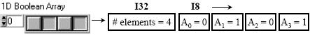 布尔(Boolean)型数据是字节型数据,存储为8位数值(一个字节),数值0表示False,其余数值代表True。布尔数组的存储格式如下图所示: