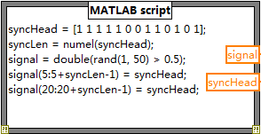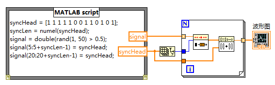 首先,信号的构造还是使用了MATLAB节点,这样比较方便而且便于调整,如下图所示: