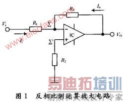 借助集成运放电路转换速率高,输入基极电流和漂移电流小,漂移电压温度系数小的特点,利用短路电流放大器的原理对待检测电流进行1:1放大,展宽信号的内阻大小要求范围,提高了检测的灵敏度,实现瞬间变化电流的检测。图1所示为一反相输入比例运算放大器电路,输入信号Vi经过电阻R1接到集成运放的反相输入端∑,而同相输入端∑经过电阻R2接地。输出电压VO经反馈电阻RF接回到反相输入端,形成一深度的电压负反馈。在实际应用中为了保证运放的2个输入端处于平衡的工作状态,避免输入偏流产生附加的差动输入电压,应使反相输入端与同相输入端对地的电阻相等。在图1中应使R2=R1∥RF。由于理想运放的L=L=0,所以R2上无压降,VO=0,再由理想运放的V+=V-,所以V-=0,得Vi=Ii×R1,所以反相输入放大电路的等效输入电阻R1=V/Ii=Ii×R1/Ii=R1。若使R1=0,则放大器输入电阻即为零,根据平衡电阻的取值要求R2=R1∥RF,则R2=0,这就构成了一个短路电流放大器,电流输入的阻抗为零,输出的电压VO的大小随输入的电流线性变化。如图1所示,因为V∑∑=0,相当于信号源外电路短路,但实际并不断路,∑,∑之间电阻极大,又因为∑点对地电阻达到几兆欧,所以信号源的输出电流只能经RF和IC形成回路,即VO=IORF。