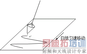物理学理论可以证明,一端通过细绳固定的重物在作摆动时,与中心垂线的距离满足正弦波规律。沙漏实验可以清晰地显示这个随时间变化的波形:用沙漏充当重物,并且在沙漏底下的桌面上平铺一张纸,当沙漏开始摆动时,让纸匀速移动。这样,沙漏中流出的细沙,就在纸上留下了一个正弦波痕迹,如图1所示。利用这种设计思想,可以完成波形在平面上(对应于时间的流动)的展开。这种设计思想在波形记录、显示中被广泛采用,比如心电图机,就是用原地摆动的电热针,在匀速移动的记录纸带上描记出心电波形。