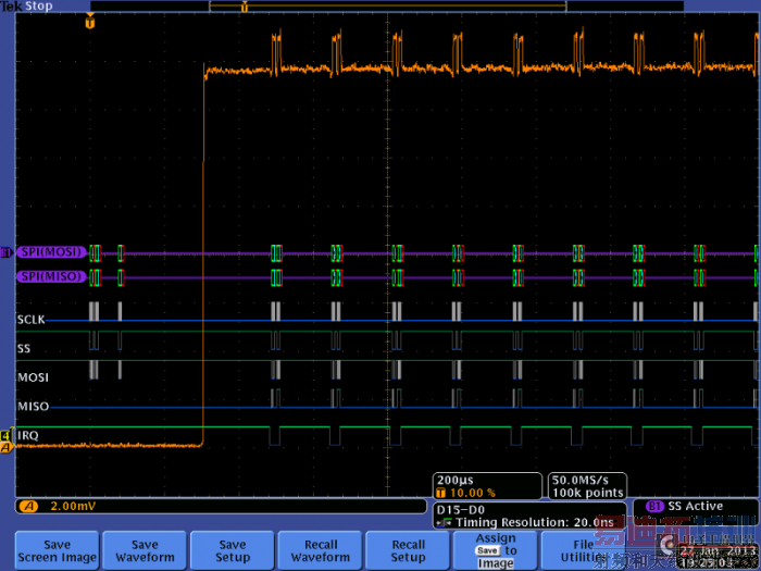 最近,我有幸执行一个涉及Arduino Uno的项目,其中采用Atmel ATmega328微控制器,并使用SPI总线连接RFM12B模块、ISM频段FSK收发器。和往常一样,我们要解决多个硬件和软件问题。大家将看到,MDO4000混合域示波器帮助我们找到了噪声问题的根本原因。我使用的设置如下: