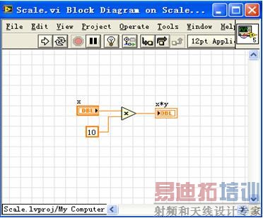 首先我们编写一个名为Scale.vi的程序,功能很简单就是对输入的数据乘上10,然后再输出(图7)。