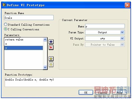 由于是LabVIEW生成的DLL文件,在Parameters页面不需要做改动,但是由于VI还有一路输出,所以还需要添加一个参数y,作为DLL文件的输出。