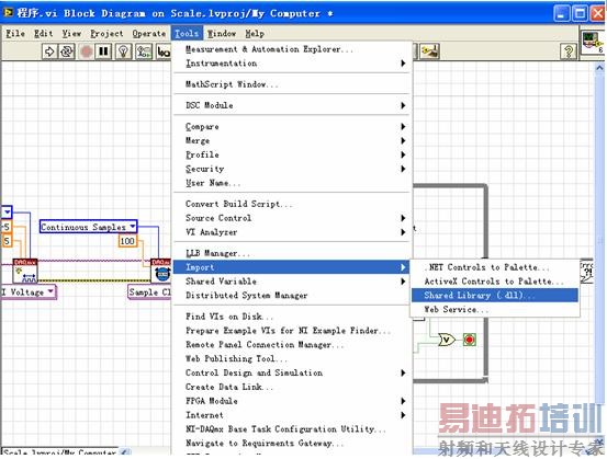 LabVIEW中还有一种方法可以调用DLL文件,在VI的选项栏,依次选择Tools——Import——Shared Library(.dll),弹出Import Shared Library对话框。