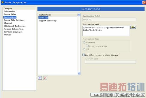 点击Destination>> Scale.dll,点击,可选择需要保存的路径。然后再点击Support Directory,这是指明了DLL支持文件的路径(比如数据文件之类的放在哪个文件夹),选择默认即可: