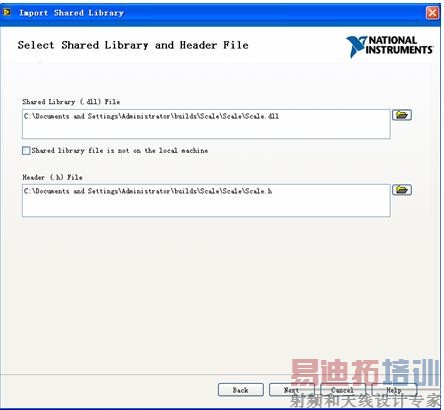 选择Create VIs for a shared library,点击Next,在Shared Library(.dll) Files中输入Scale.dll文件的路径,Head(.h) File里填写头文件的路径。