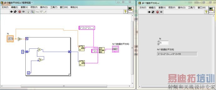 LabVIEW学习笔记——第二个程序:多个整数的平方和