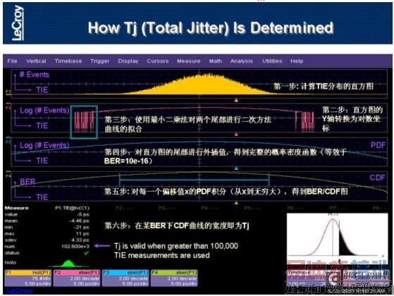 第六步测量某误码率下CDF曲线的宽度即为总体抖动Tj。