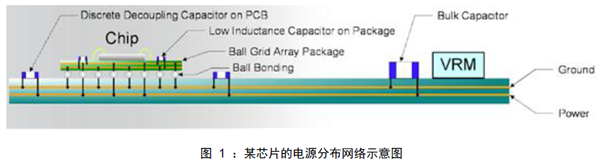 当芯片上各种功能电路同时工作时,稳压电源模块VRM无法实时响应负载对于电流需求的快速变化,芯片上的电源电压发生跌落,从而产生电源噪声,为了保证输出电压的稳定,需要在封装、PCB上使用去耦电容和合理的电源平面与地平面对。从目前电源完整性分析的角度看,业内普遍认为在PCB上可以处理到几百兆赫兹PI问题,更高频率的电源完整性问题需要在芯片和封装设计时解决。原因在于: