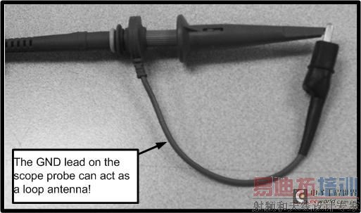 需要注意的是,与 1x 示波器探针相比,我们应优先考虑 BNC 直接连接,因为接地的连接方式能够减小 RFI / EMI 干扰(请参阅图 5.5)。其中一种避免这种情况的方法就是,拆除示波器探针的接地引线和上端引线 (top cover),同时在探针的侧面进行接地(请参阅图 5.6)。图 5.7 显示了一个 BNC 短路电容。