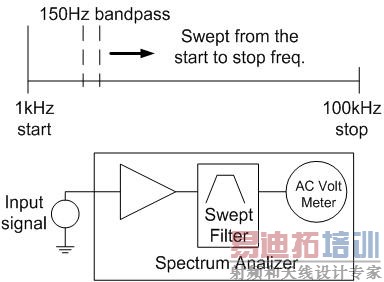 频谱分析仪和示波器一样,既有数字型的,也有模拟型的。模拟频谱分析仪生成频谱曲线的一种方法是:扫描各种频率下的带通滤波器,同时标绘出滤波器的测量输出值。另一种方法是运用超外差接收技术,该技术在各种频率下完成对本地振荡器的扫描。然而,数字频谱分析仪则采用快速傅里叶变换来产生频谱(常常与超外差接收技术配合使用)。