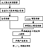 2. 检测方法:本系统的检测方法是采用预先经自学习产生的一系列标准图像与采集的相应图像相减并转换成为二值图的方式,在经一系列的处理之后,得到检测的结果并判断产品的好坏。其流程如图1-2所示: