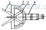 量具结构如图2,主要由测量爪1、角度盘3、读数头4组成。