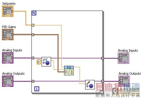 使用CompactRIO扫描模式,您可以将用户数据从FPGA VI插入到NI扫描引擎中。举例来说,如果您需要通过LabVIEW FPGA来计算加速度计输入的RMS值,现在您可以将这个值周期性地写入一个I/O变量,并将这个变量拖曳到LabVIEW Real-Time VI的框图中。LabVIEW FPGA还能通过扫描引擎逻辑提供同步FPGA逻辑所需的功能。