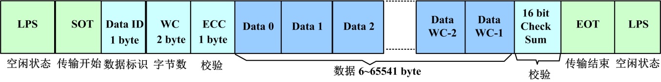 (2)、长数据包:6~65541 bytes(动态长度)主要用于传输大量图像数据或者部分控制命令。