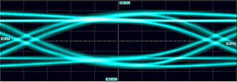 眼图是用余辉方式累积叠加显示采集到的串行信号的比特位的结果,叠加后的图形形状看起来和眼睛很像,故名眼图。眼图上通常显示的是 1.25UI 的时间窗口。眼睛的形状各种各样,眼图的形状也各种各样。通过眼图的形状特点可以快速地判断信号的质量。图六的眼图有“双眼皮”,可判断出信号可能有串扰或预(去)加重。图七的眼图“眼睛里布满血丝”,这表明信号质量太差,可能是测试方法有错误,也可能是 PCB 布线有明显错误。 图八的眼图非常漂亮,这可能是用采样示波器测量的眼图。