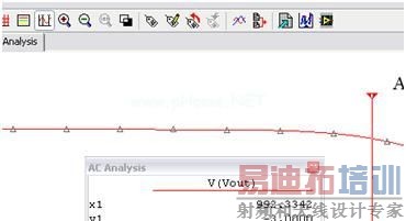 在PSPICE中,用户现在就可以建立分析。分析设置需要设置节点名称,在单独“分析界面”中选择特定分析类型然后设置起始频率(Star Freq),截止频率(End Freq),十倍频扫描点数(Pts/Decade),和扫描类型(十倍频)。
