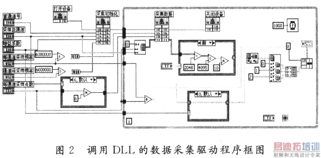 LabVIEW是美国NI公司推出的一种基于G语言(Graphics Language),即图形化编程语言的虚拟仪器软件开发工具,具有强大的数据采集功能,通常只支持NI公司的数据采集卡,而这些卡的价格比较昂贵。因此,为了能在LabVIEW平台上驱动普通的数据采集卡,用户必须通过LabVIEW所提供的调用库函数节点(call Library Function Node,CLFN)及代码接口节点(Code Interface Node,CIN)等功能,将功能强大、编程灵活、而且已有很多现成程序模块的C语言同Lab-VIEW中编程直观方便的图形化G语言结合起来,从而实现用普通的数据采集卡来采集数据的功能,使LabVIEW在对硬件的支持上有了一个质的飞跃。