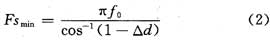 这里有几个问题需要说明。由于是对正弦信号进行采样,从时域进行幅度估计,首先要解决的是幅度估计精度的问题。因为采样周期与信号周期不一定满足整数倍关系,也就是说正弦信号采样后的各周期的最大值点不一定对应的就是正弦信号的最大值点,假定采样信号的最大值点与实际信号最大值之差在△d以内,则采样率最小值由下式决定:
