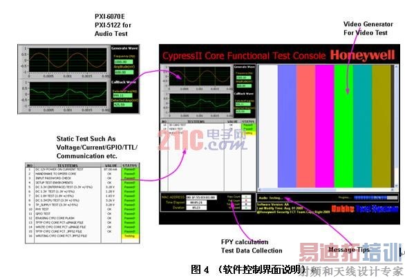 该系统综合了音频,视频的自动测试,包含了GPIB,RS232,RS485, Ethernet等多种接口和通讯方式,测试