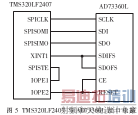(3)AD73360L只能工作在主动方式,不能向DSP的SPI端口提供使能控制信号SPISTE,AD73360L不能启动TMS320LF2407接收或发送数据。