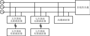 采用电力滤波装置就近吸收谐波源所产生的谐波电流,是抑制谐波污染的有效措施。传统的方法是采用LC无源滤波器,其优点是成本低、效率高,但其补偿特性易受电网阻抗和运行状态的影响,易和系统发生谐振造成谐波放大,且只能补偿固定频率的谐波[2][3]。