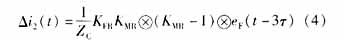 M端第1个正向行波浪涌eF(t)(即故障初始行波浪涌在母线M的反射波)在故障点的反射波到达母线M时所引起的本线路电流暂态故障分量可以表示为: