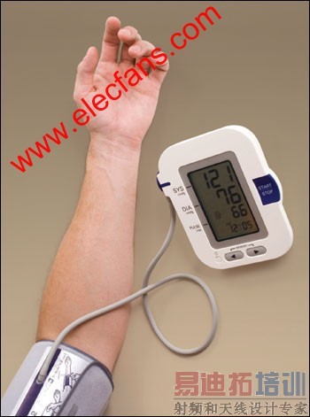 自动检测血压计有两种类型:上臂式血压计和腕式血压计。上臂式血压计包含一个气囊,测量时将其缠缚于上臂。充气袖带通过一条皮管连接到放置在手臂附近的监视器。腕式血压计尺寸较小,整个装置可以缠绕在手腕上,因此,这类产品对尺寸的要求比较严格。有些上臂式血压计需要手动充气,但目前市场上的多数上臂式和腕式血压计都采用了全自动设计。