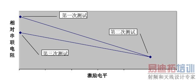 为了测试DLD特性,设置的最大激励必须足以激活“睡觉”晶体,因此,当第一次测试之后,同一只晶体的DLD将有些变化(通常显的比较好).并且,如果当最大测试激励足以使晶体总是“苏醒”的话,那么,该晶体的表现如同理想晶体一样(可参看以上的理想晶体的DLD曲线).所以,DLD数据的重复性较低,为了准确的测试晶体的DLD,测试将是不可重复的,只能依赖第一次耐测量数据.