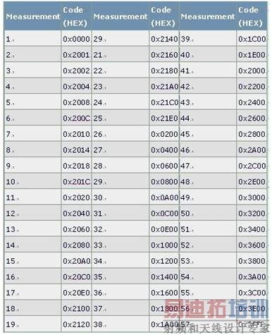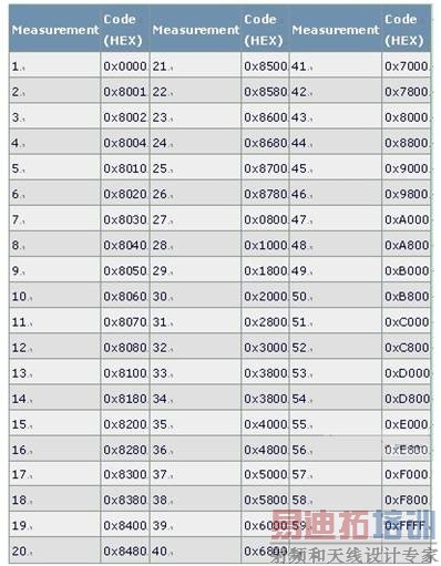 电流源的总数57 (31 + 15 + 7 + 4)加上满幅值和零值,确定了测量MAX5891线性度所需的最少编码数。59次测量支持重新构建完整的DAC输出传输函数。一旦确定了传输函数,即可计算线性度。该方法虽然缩短了测试时间,但降低了测量精度。表1列出了推荐的MAX5891编码组。