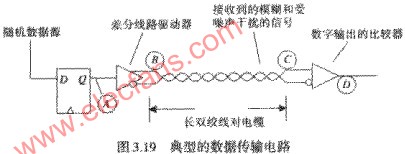 图3.19举例说明的是一个100MBPS的 数据传输 系统。由于码间干扰和附加噪声,在D点输出的信号波形比A点的波形呈现了更多的抖动。这里主要讲的就是如何正确展现输出波形的抖动特性。