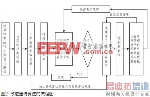 传统的遗传算法存在早熟收敛、非全局收敛以及后期收敛速度慢的缺点,为此本文提出了一种能够在进化过程中自适应调节变异率,以及利用模拟退火防止早熟的改进遗传算法,同时该算法利用敏感度信息可以有效地控制遗传操作。图2是改进遗传算法的流程框图。