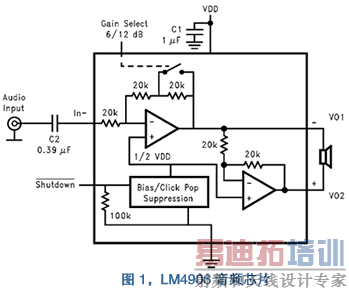 以大众消费市场来说,美国国家半导体有专为低档电话而开发的最新产品 LM4906。这款芯片是 Boomero 系列的最新型号,可为标准型号移动电话提供基本的音频功能,而且采用这款芯片无需加设旁路电容器,有助节省成本,缩小印刷电路板面积,以及确保厂商可以更快将产品推向市场。需要添加的外置零部件不超过三个,其中包括扬声器。