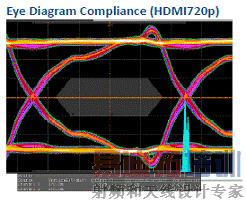 USB 480 Mbps信号可产生240 MHz基频。因为该信号本身是方波,我们不难估算出传送信号所需的带宽。利用傅利叶级数逼近算法,最后所需带宽大约是基频的三倍。因此,差分信号传输至少需要720 MHz的带宽。从SCC21标准的共模滤波图中不难看出,为了让三次谐波通过滤波器,部分符合的要求的频率被滤除。我们对一个内置意法半导体的ECMF滤波器的USB接口进行测试,从USB 480Mb/s的眼状图中可以看出,该接口设计100%符合USB高速数据传输标准,同时信号衰减度测量值在900MHz时达到30db。