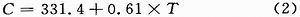 式中:C为超声波在空气中的传播速度,0℃时C为331 m/s,25℃时C为347 m/s,其与环境温度T(单位:℃)的关系如式(2):