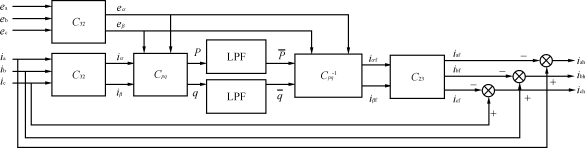 p瞦法的原理图如图3所示。根据上述定义可计算出p、q,经低通滤波器LPF得到p、q的直流分量