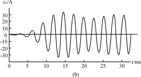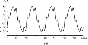 下面以三相可控桥整流电路为对象,假设电源电压对称且无畸变,电流含有5次、7次谐波,控制角为30°,如式(16)所示。电流ia如图7(a)所示。采用基于p瞦运算方式的五次谐波检测方法得出的ia5波形如图7(b)所示。