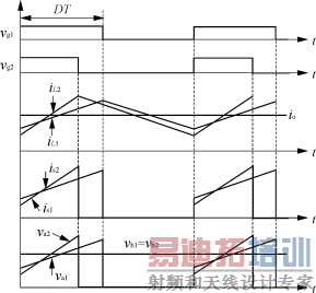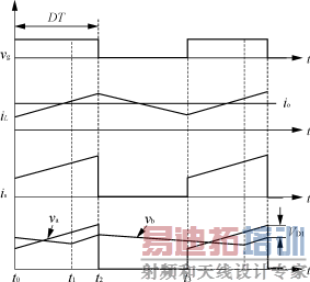则正激变换器限流保护电路的理论工作波形如图3所示。其一个开关周期可以分为3个工作阶段。