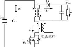 从式(3)中可以看到, n 1, n 2, R 为常数,在 V ref一定的条件下, i omax是个恒定值,并不随输入电压的变化而变化。