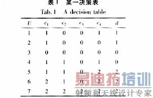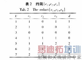 决策表中的一个属性对应一个等价关系,一个决策表可看作是定义的一族等价关系。决策表中并非所有的条件属性都是必要的,有些是多余的,去除这些属性不会影响原有的表达效果。决策表的化简就是化简表中多余的条件属性,即去除冗余的条件属性,在删除这些属性后不会影响原有的表达效果,化简后的决策表具有更少的条件属性但具有化简前的决策表的功能。