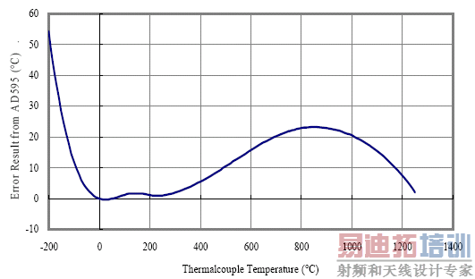 <图3>AD595C 之输出与线性化温度的误差。