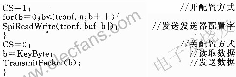 (6)无线收发器,通过内部并行口或内部SPI口与其他模块进行通信,工作于全球开放的2.4~2.5 GHz频段。