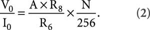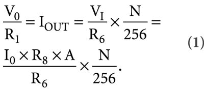 采用图中所示元件参数值,电路的等效电阻范围从全“0”二进制输入(即 N="0")的 5.5Ω左右至全“ 1” 二进制输入(即 N =255)的255Ω。